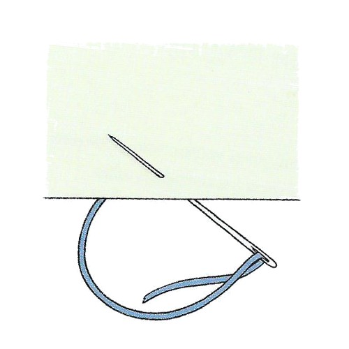Шаг 2 : Прежде чем протянуть нить через ткань, сформируйте из нее петлю и введите в петлю иглу, как показано на рисунке.