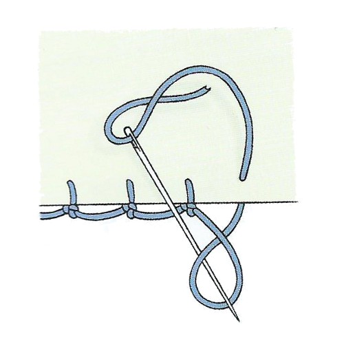Армянский краеобметочный шов имеет вид коротких петель с рельефными узелками. Обработанный им край получается фестончатым (зубчатым). Важно, чтобы мелкие, одинаковые вертикальные стежки располагались на равном расстоянии друг от друга.